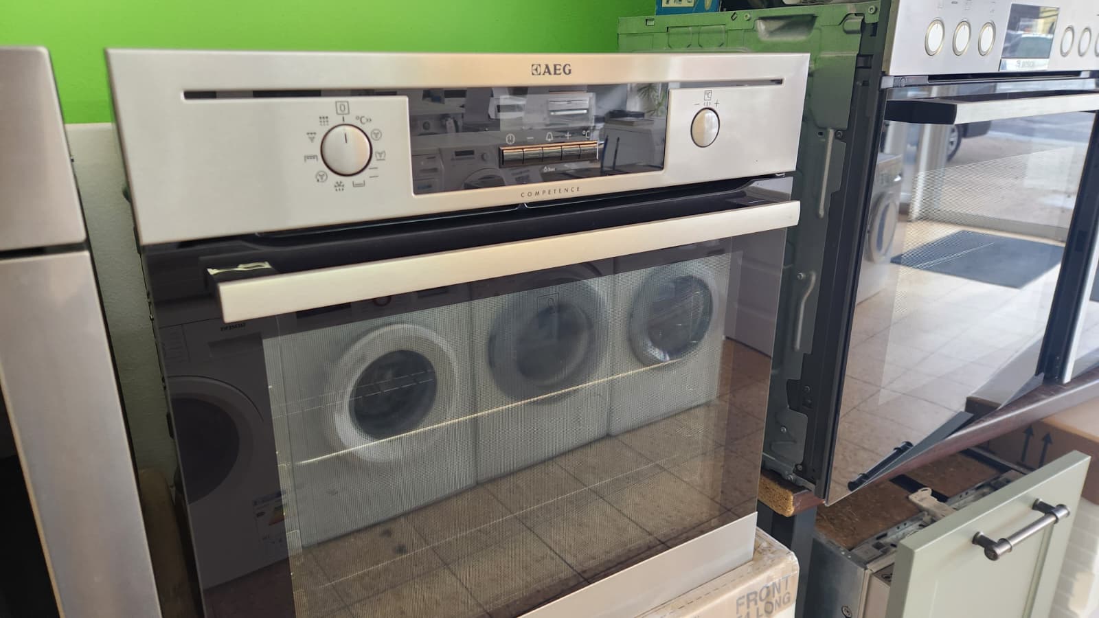 This is a used, self-contained AEG oven that is very clean inside and out. The appliance works perfectly. All household appliances are carefully inspected, tested, and fully overhauled by us. You receive a one-year warranty on all purchased appliances.