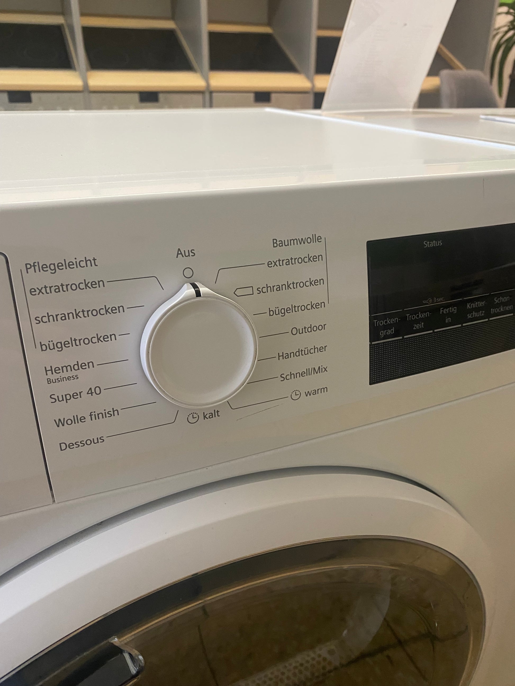 • Ausstattung: Programmablaufanzeige, Restlaufzeitanzeige, Endzeitvorwahl 24h, Trommelbeleuchtung, wartungsfreier Kondensator