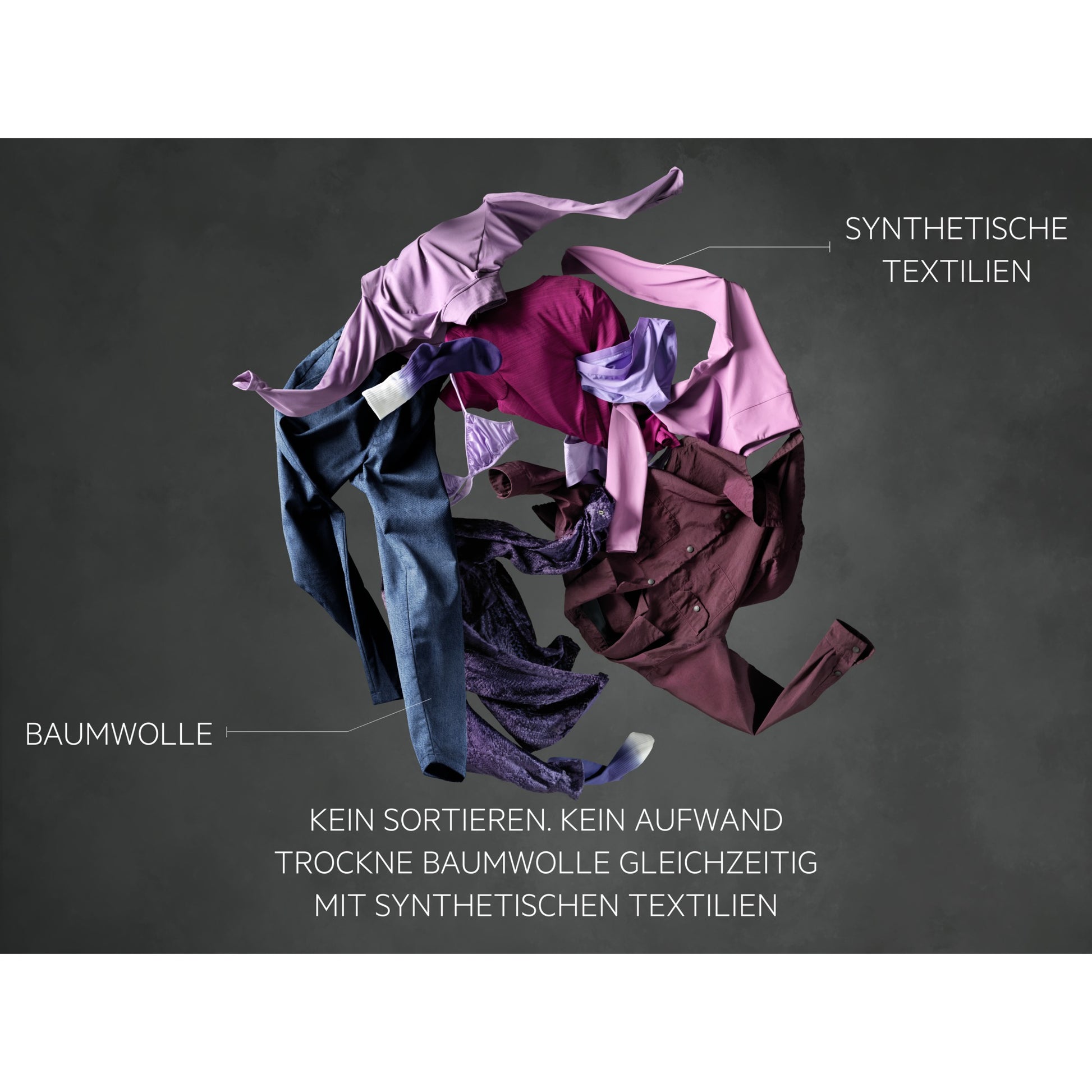 | Trockenprogramme | Outdoor/Sport, Baumwolle, Bettwäsche, Daunen, Feinwäsche, Wolle, Eco, Auffrischen, Schranktrocken, Automatikprogramm, Bügeltrocken, Pflegeleicht, Extratrocken, Mischgewebe |